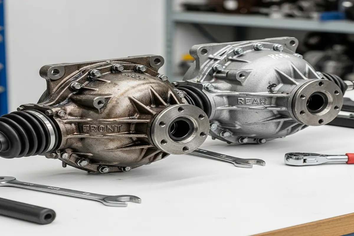 - دیفرانسیل جلو و عقب (Differentials): این مکانیسم اجازه می دهد که چرخ های یک محور (مثلاً چرخ های جلو) با سرعت های متفاوتی بچرخند (ضروری هنگام پیچیدن).